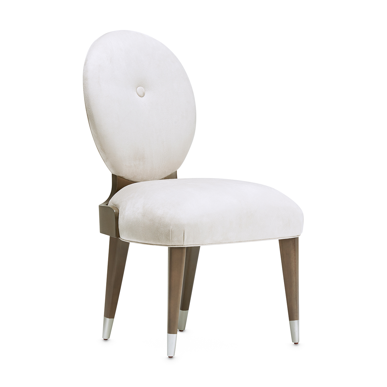 • Tapered Legs with Platinum Accents: Slim legs finished with brushed platinum caps introduce a polished, modern finish.
