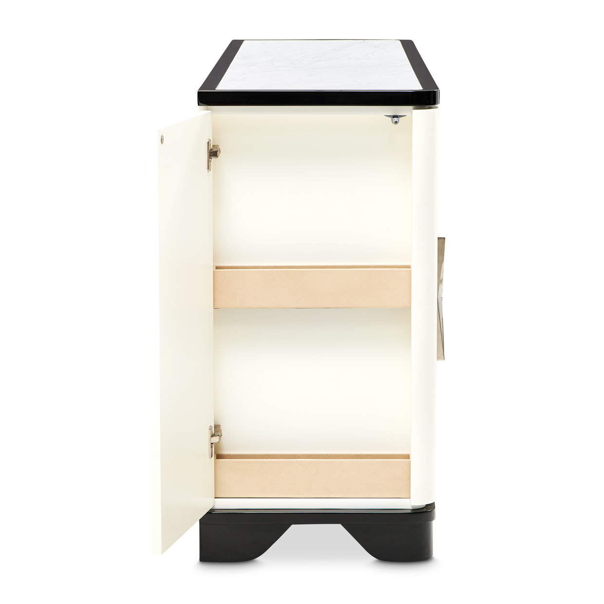 Crowned with a sleek marble inlay, the Tuxedo sideboard combines exquisite aesthetics with practical design. The elegant white surface is complemented by spacious cabinets and drawers, including discreet side storage that seamlessly blends with the unit’s sophisticated silhouette. Inside, a silverware tray adds a thoughtful touch, ensuring your finest pieces are stored with the care they deserve. Whether hosting a gala or a quiet family dinner, the Tuxedo Sideboard stands as a symbol of gracious living.