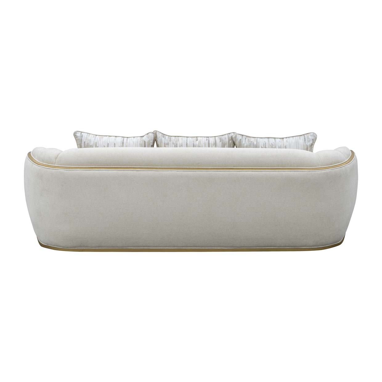 Gracefully contoured and impeccably finished, the Scotts Square Sofa brings sculptural elegance and elevated comfort to the living room. Wrapped in a sumptuous chenille fabric in an understated cornsilk hue, its silhouette flows effortlessly from arm to base, creating a soft, welcoming presence. A radiant gold frame traces every curve, highlighting the sofa’s fluid form with a warm, luminous glow. Four curated accent pillows—three in a rich jacquard pattern and one in plush faux fur—offer the perfect balance of texture, style, and indulgent comfort.