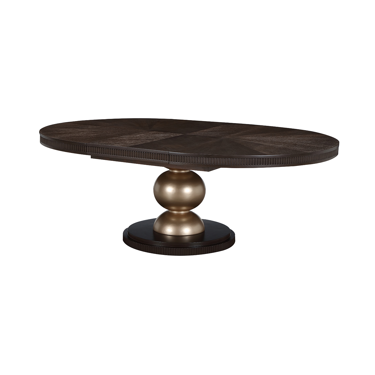 The West Kensington Collection is a masterful blend of refined elegance and modern sophistication. Defined by its signature reeded details, deep espresso finish, and gold accents, each piece showcases an exquisite interplay of texture and form. Emperador marble veneers add a touch of grandeur, while marble and metal hardware lend a distinctive, sculptural allure. Plush upholstery in a soft, natural hue creates a warm contrast, balancing bold architectural lines with inviting comfort. Designed for those who appreciate luxury with a contemporary edge, West Kensington embodies understated opulence and timeless beauty.