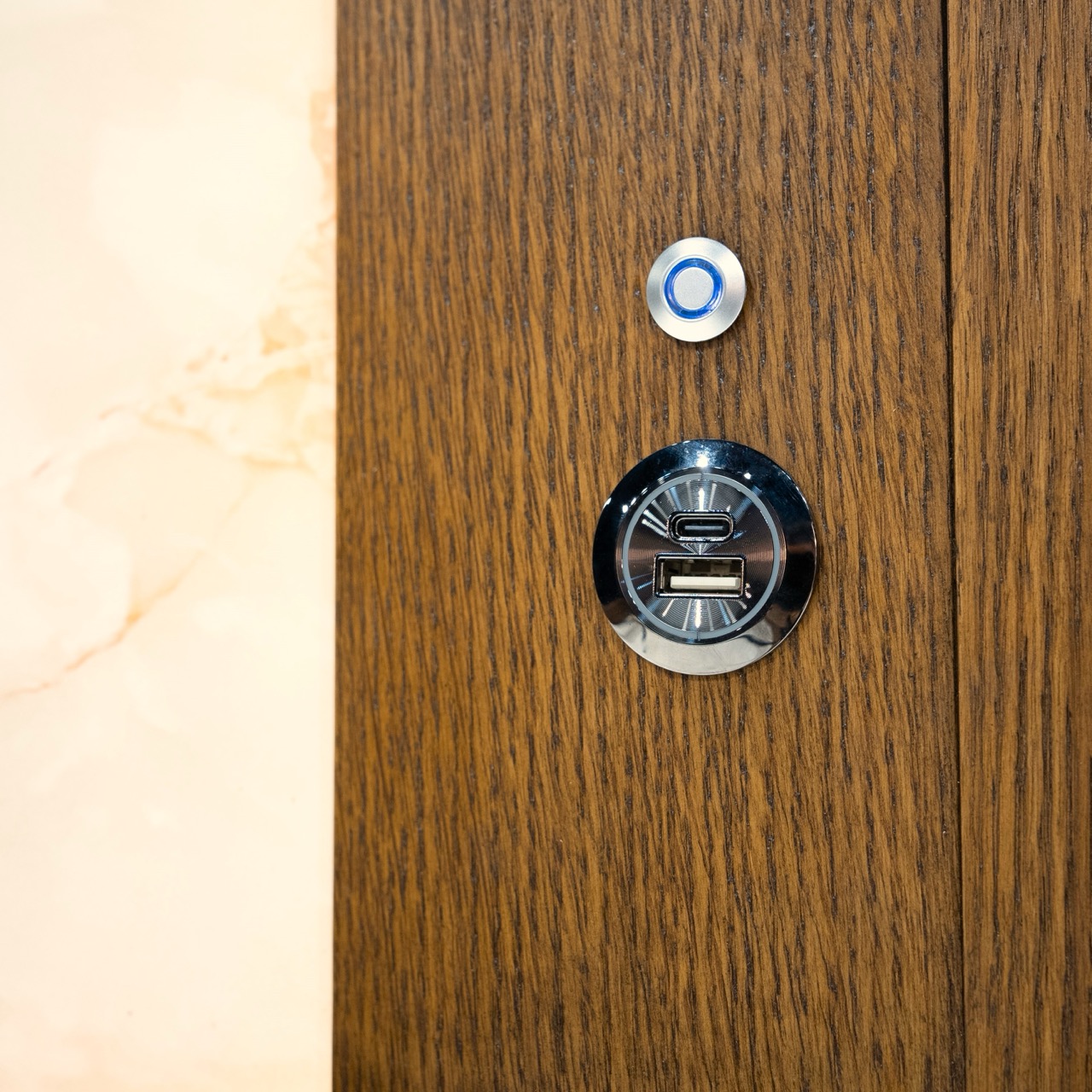 The Portrait Collection is a study in quiet luxury, where timeless forms are elevated with luminous detail. Crafted of oak veneers in a warm sienna hue, each piece showcases subtle grain patterns and architectural silhouettes. The defining element—marbleized acrylic insets with hidden LED lighting—brings a soft, ambient glow that enriches every space. From bedroom to dining and living, Portrait offers a harmonious balance of warmth, elegance, and modern ease, transforming everyday living into an experience of understated beauty.