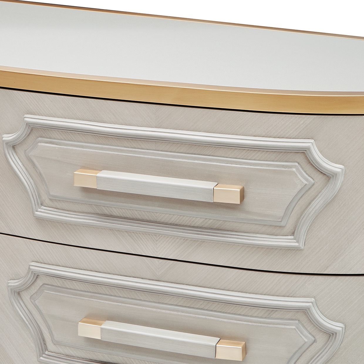 The St. Charles collection unfolds as a narrative of grandeur, where raised embellishments on each piece artfully play with the tranquil Dove Gray finish. Bronze accents subtly trace the contours, adding depth and a warm, inviting glow. Every item in this collection is a testament to elevated taste, designed to inspire awe and admiration in every glance and touch. Here, traditional grace melds with modern elegance, creating spaces that are not just seen but truly experienced.