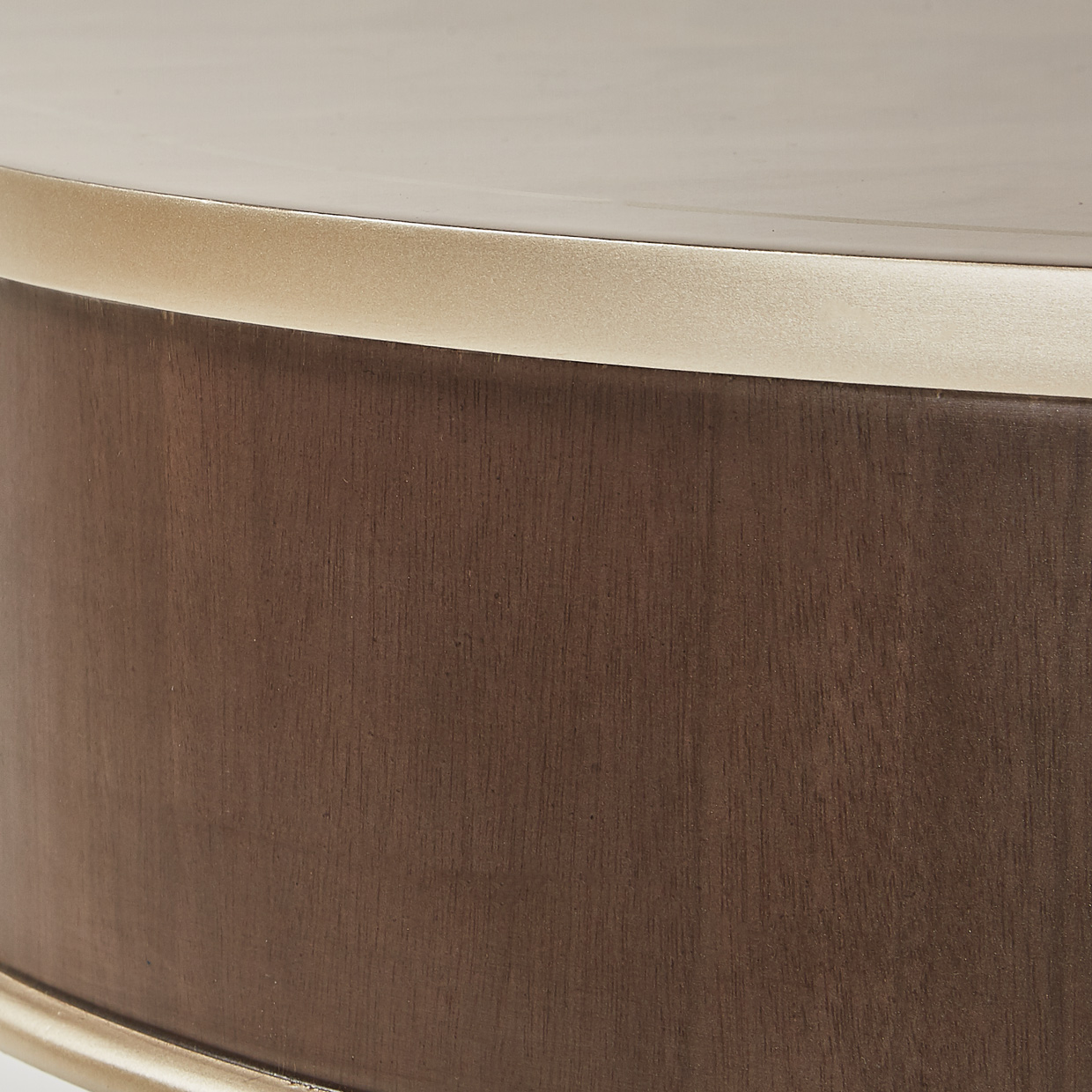 • Trim, hoop drawer pulls, and feet are finished in Chardonnay