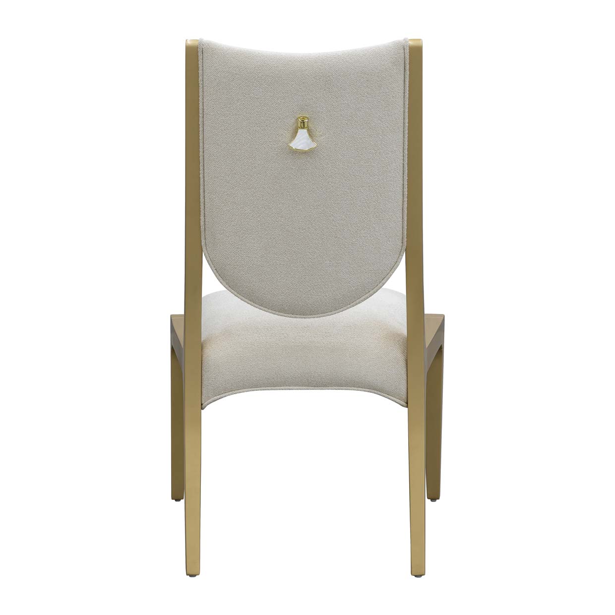 Graceful and refined, the Scotts Square Dining Side Chair brings modern sophistication to your dining experience. Upholstered in a plush chenille fabric in an understated cornsilk hue, it offers an invitingly soft texture with a luminous presence. The sculpted frame, crafted in a radiant gold finish with solid rubberwood legs, adds a stunning contrast of warmth and glamour. A gold metal and mother of pearl accent graces the back, adding a luminous finishing detail that elevates any dining setting.
