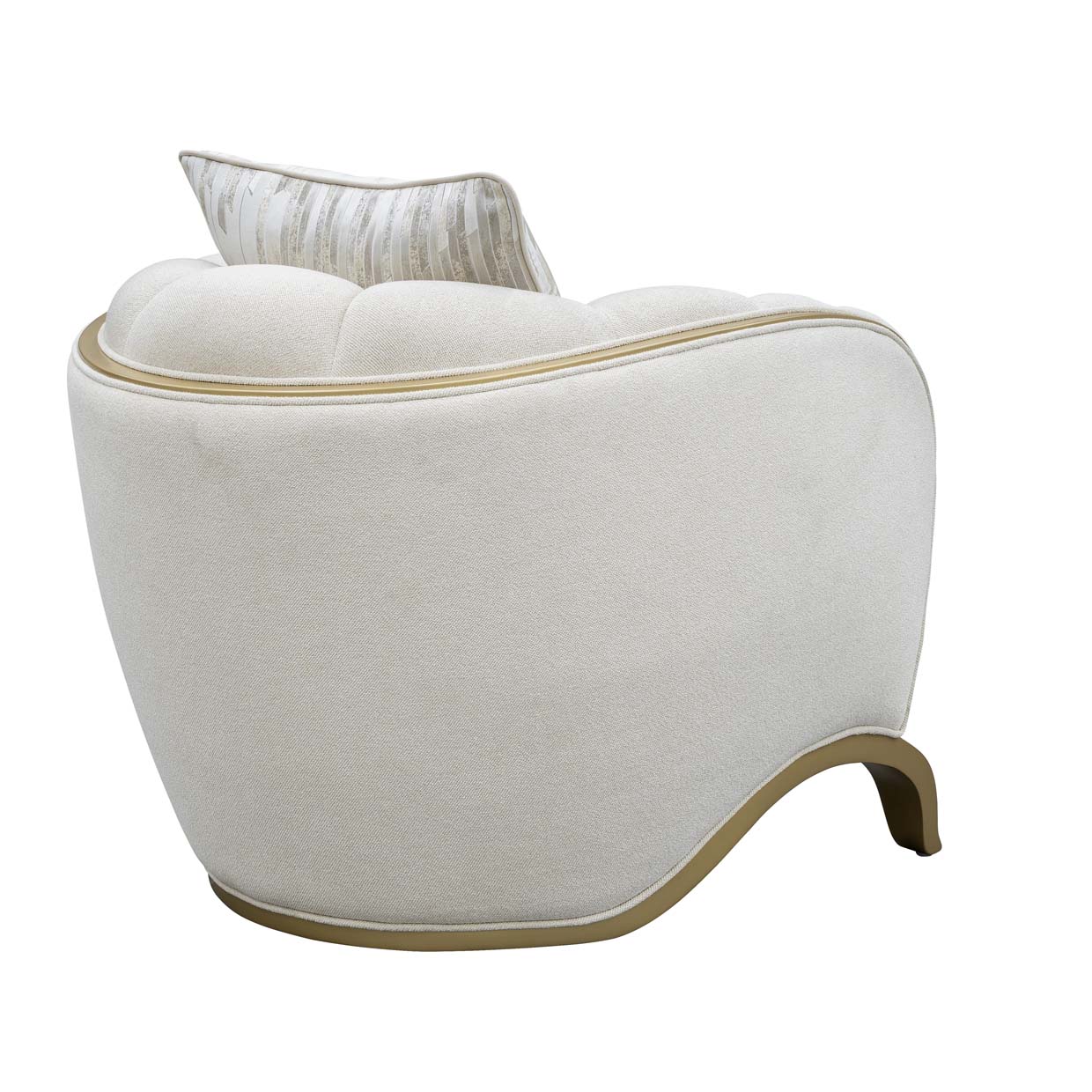 • Plush Cornsilk Chenille Upholstery: Smooth, sumptuous fabric in a chic neutral hue adds warmth and understated glamour.