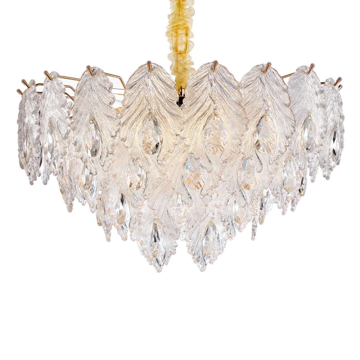 • Cascading Layers of Feather-Like Glass and Crystal: Each sculpted glass element is paired with a radiant almond-shaped crystal, creating a rich, layered composition that evokes graceful movement.