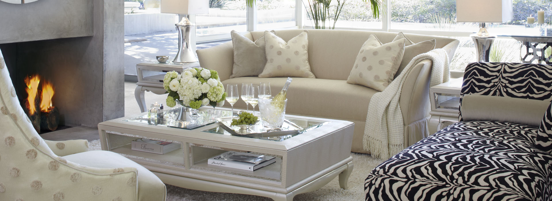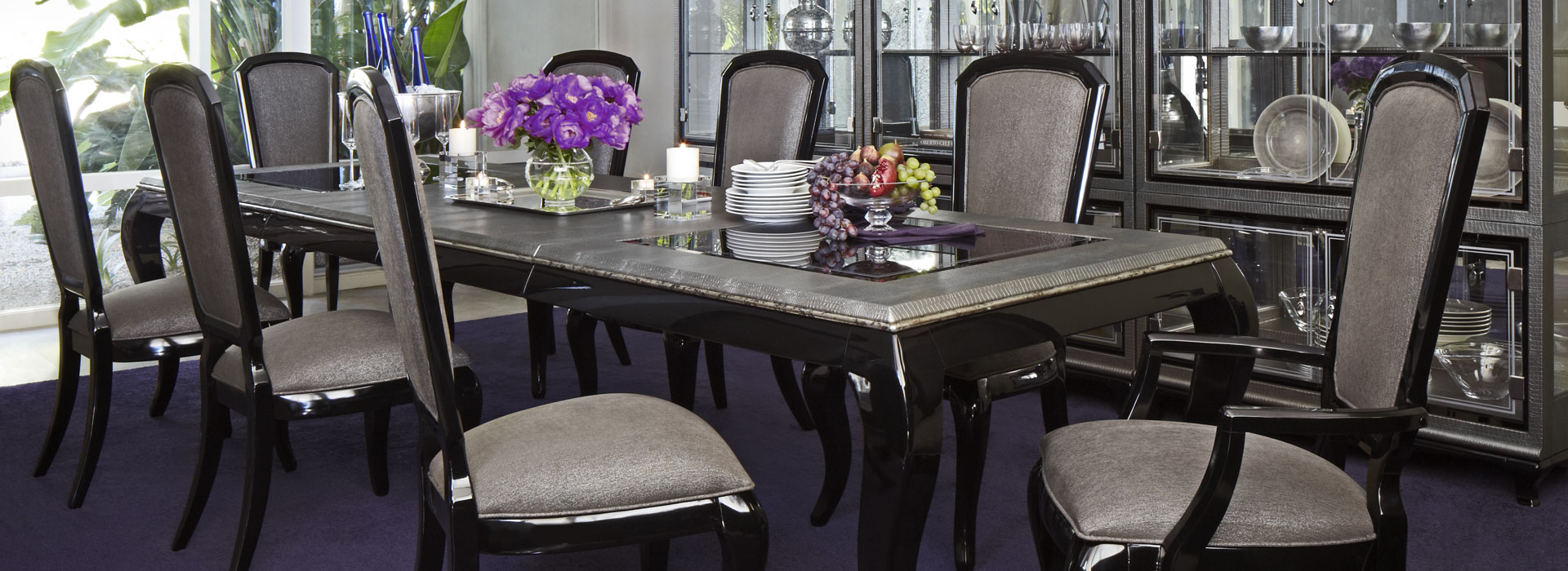 Michael Amini’s flair for fashion takes form in the dynamic After Eight collection. Contrasting colors, rich fabrics and the use of mirrored glass are just a few of the elements of its Hollywood Regency styling. By combining Hollywood glitz with minimalist details of modern design, Michael has created a striking collection.