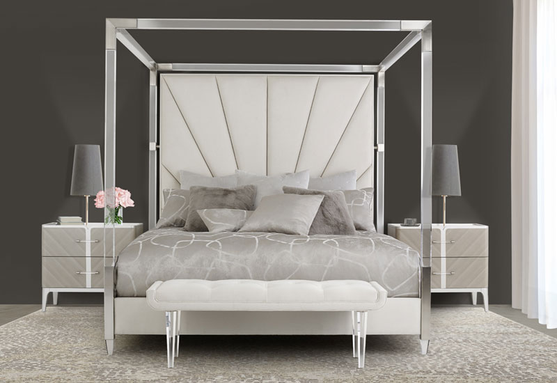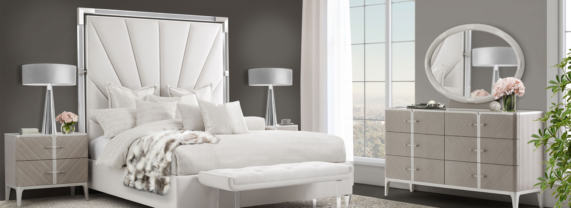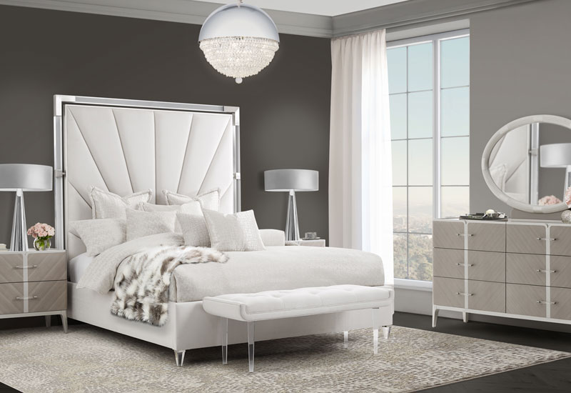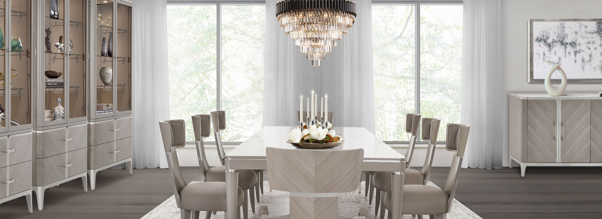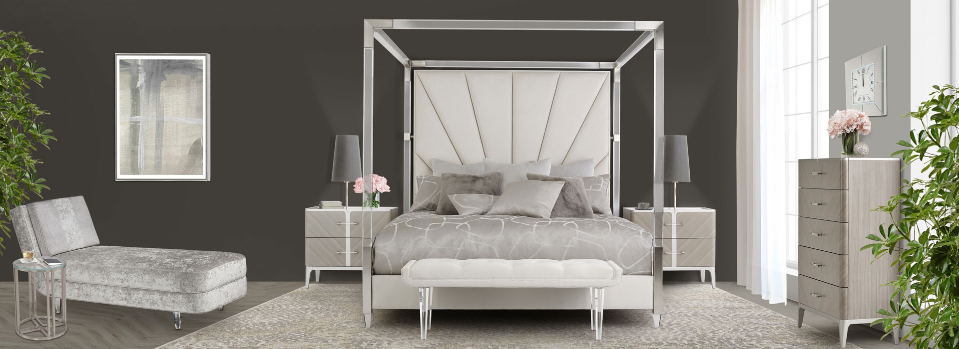 Modern elegance is found here! The Lanterna collection was designed with chic style and contemporary glamour in mind. Smooth Silver Mist finishes, acrylic and stainless steel accents,and sleek curves give this line the luxury ambiance guaranteed to light up any home.