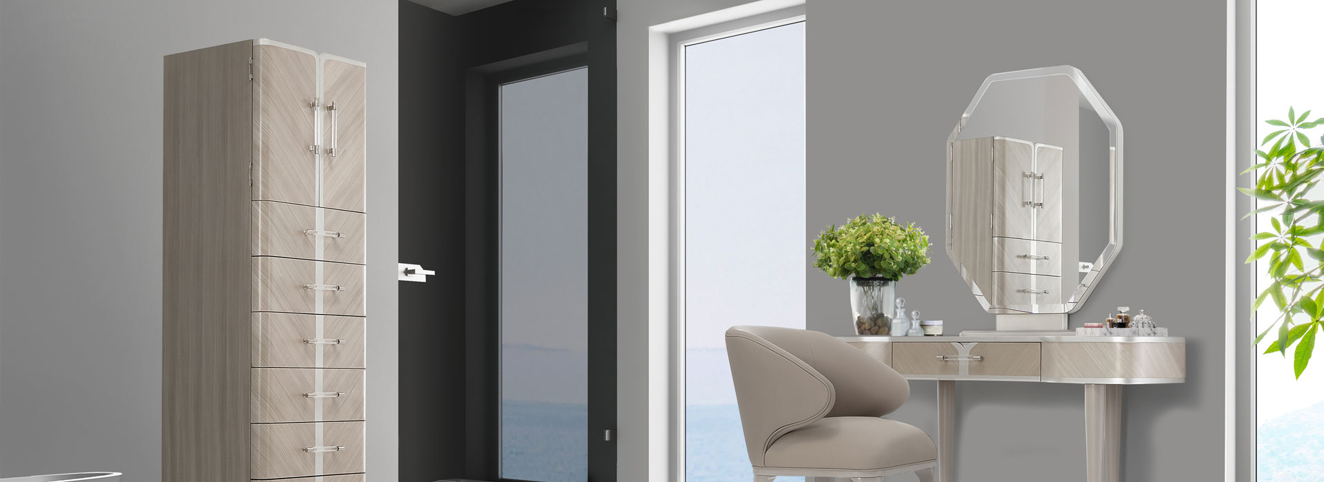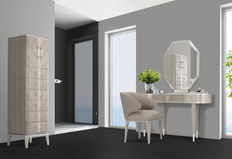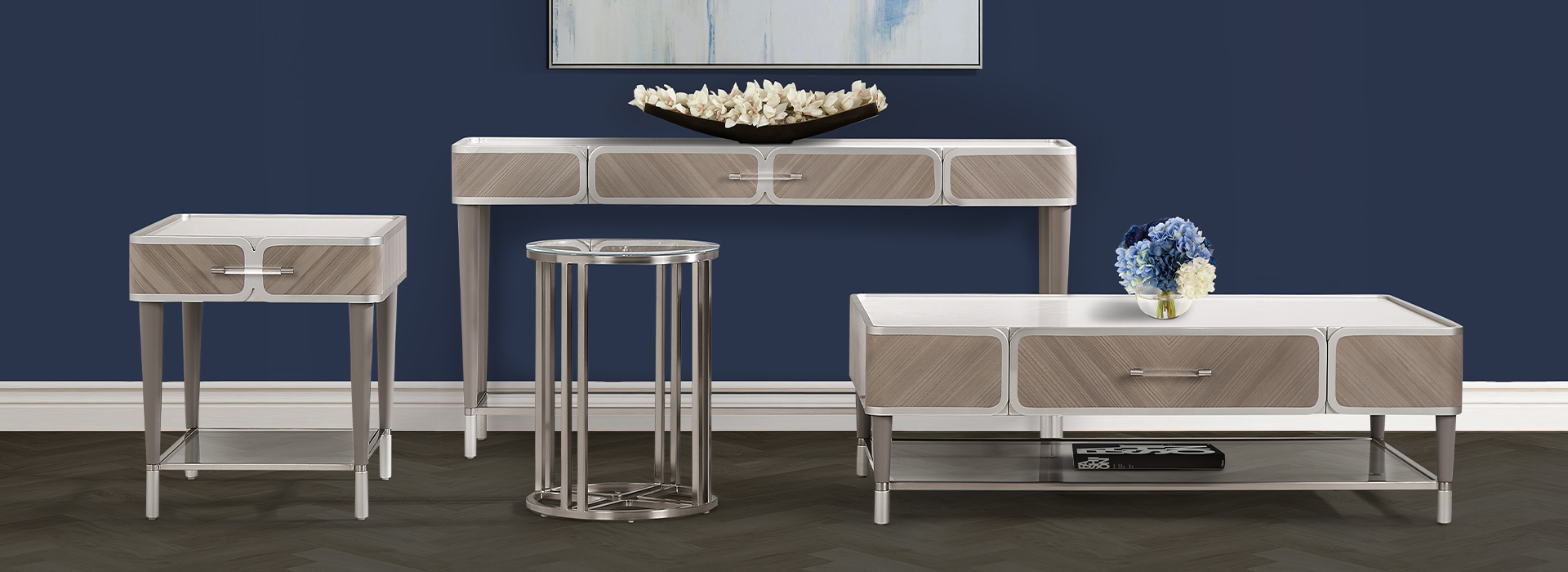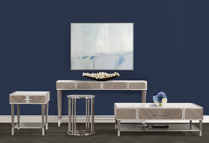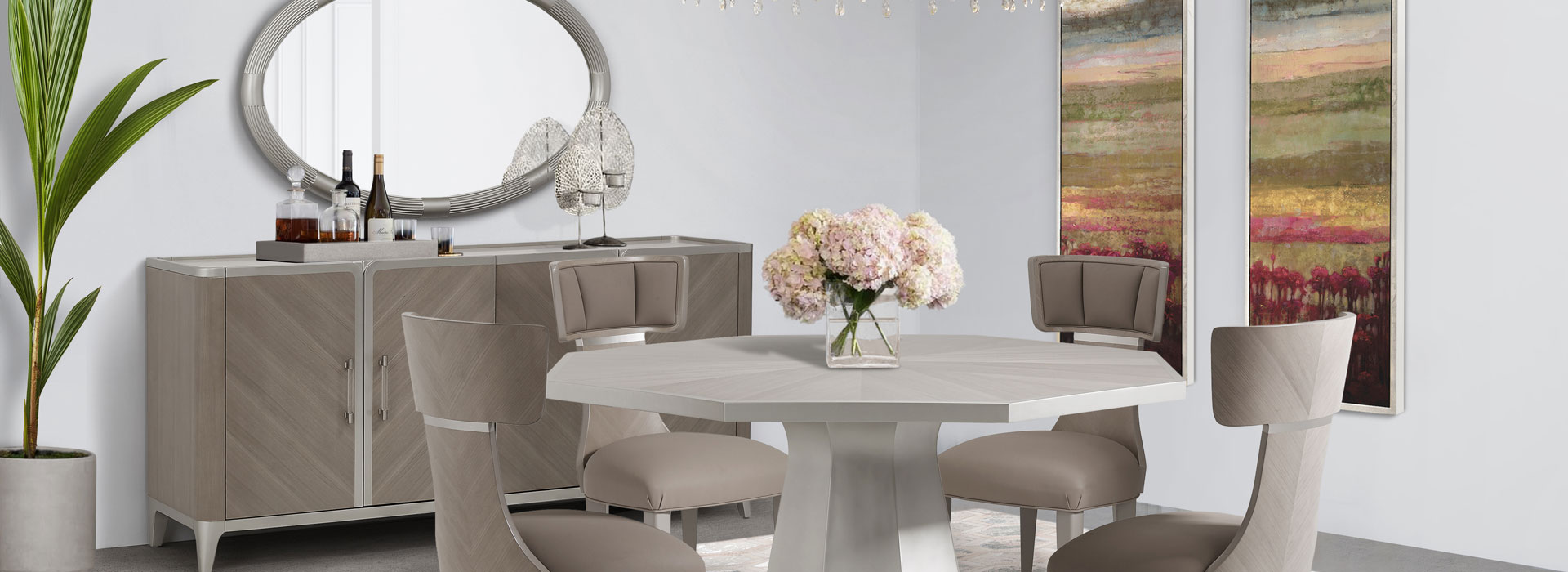 Modern elegance is found here! The Lanterna collection was designed with chic style and contemporary glamour in mind. Smooth Silver Mist finishes, acrylic and stainless steel accents,and sleek curves give this line the luxury ambiance guaranteed to light up any home.