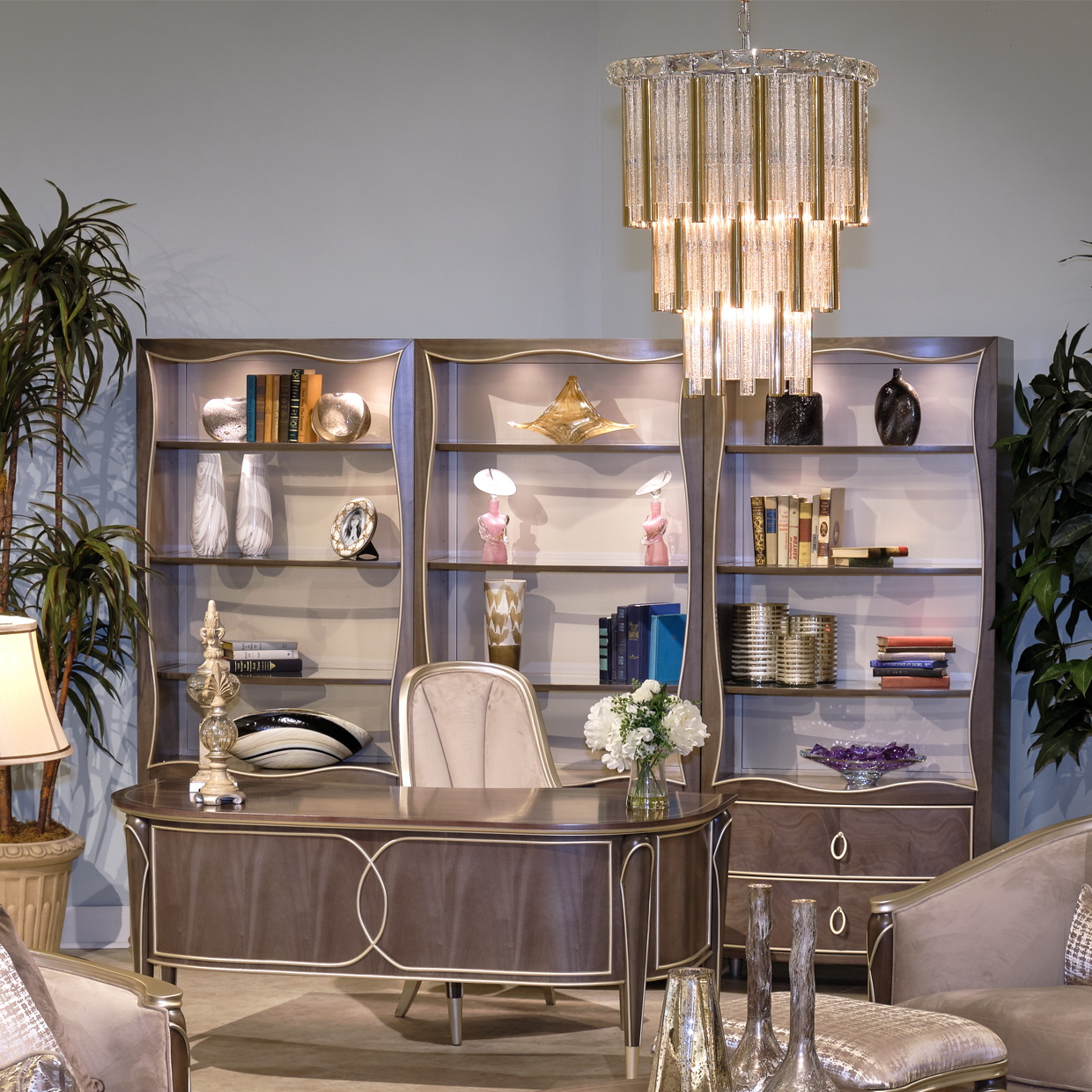 Lighting can transform a room, and chandelier lighting makes a dramatic statement. Michael Amini Lighting offers a diverse selection of lighting options from traditional tiered styling to more transitional contemporary offerings, providing the crowning touch to any room’s décor.