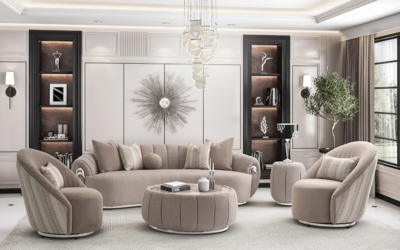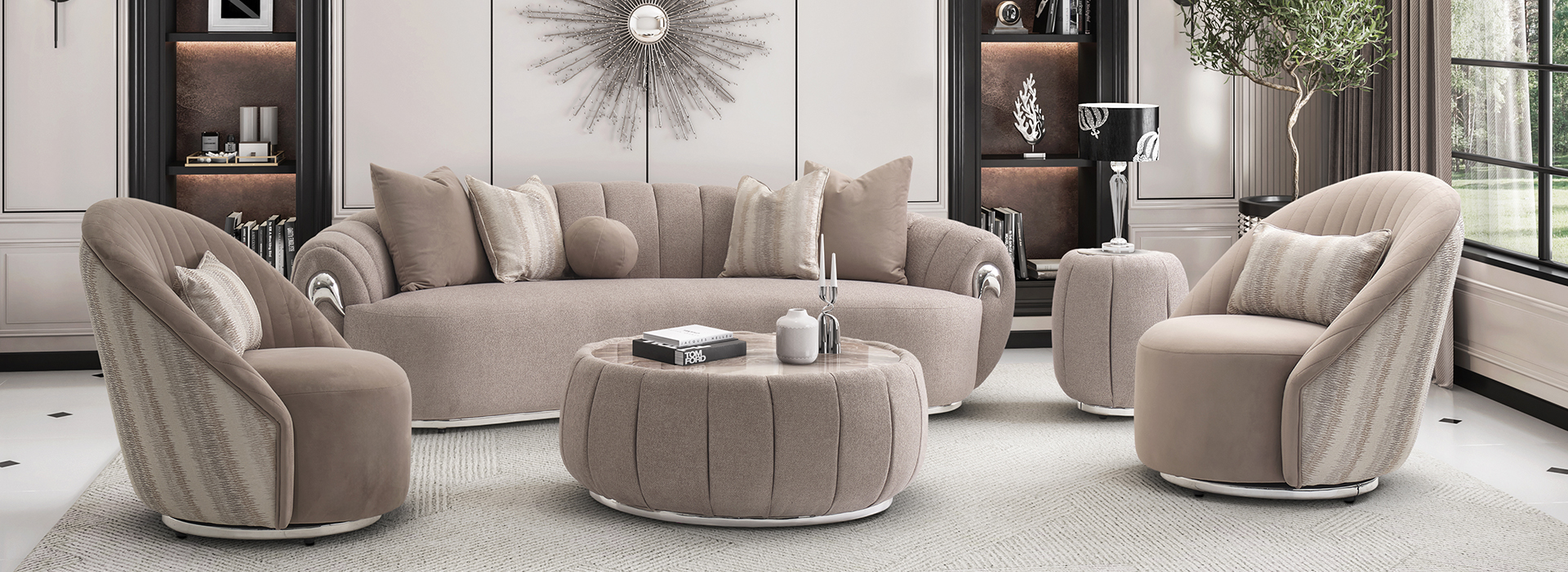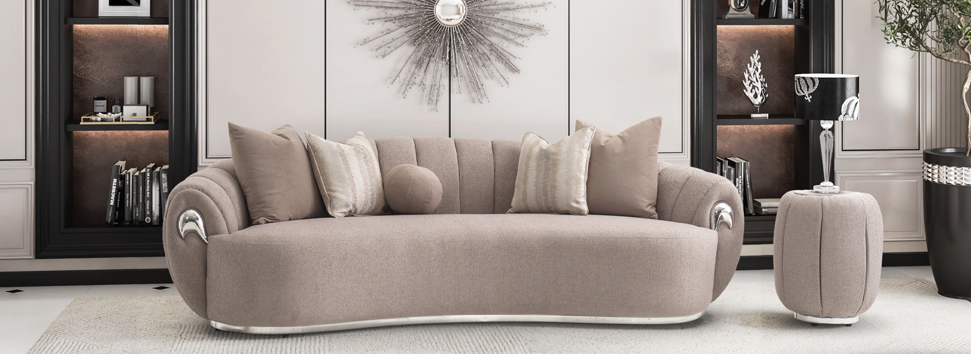 Unveiling the Lucca Collection, a timeless fusion of upscale casual living, where the quintessential curved sofa is reimagined in sumptuous woven fabric, amplified by distinctive accents and luxurious details. Complemented by harmoniously designed occasional tables, this ensemble converges functionality and elegance, creating a sublime statement of style and comfort.