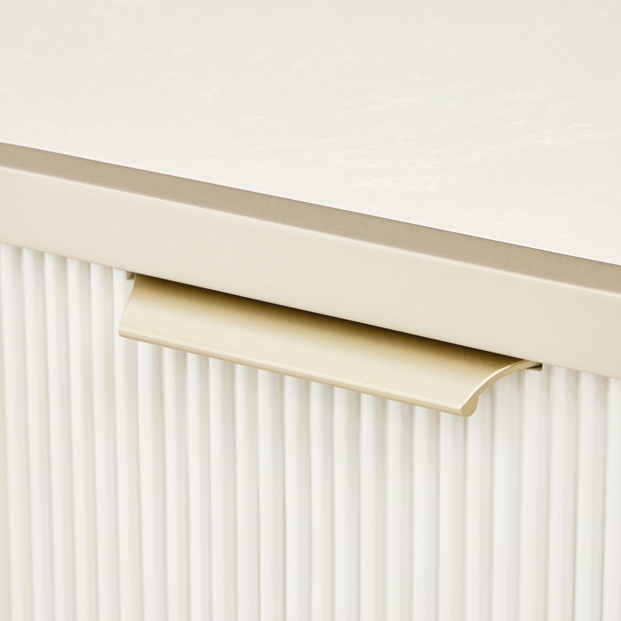 Timeless elegance meets contemporary refinement in the La Marisia Collection, where soft curves, lustrous finishes, and exquisite textures create a serene yet luxurious aesthetic. A delicate pearl finish with warm champagne accents exudes sophistication, while plush chenille upholstery offers an inviting embrace. Greek Key motifs, reeded accents, and faux-shagreen textures add depth and artistry, complemented by marble and glass surfaces that enhance the collection’s graceful silhouettes.